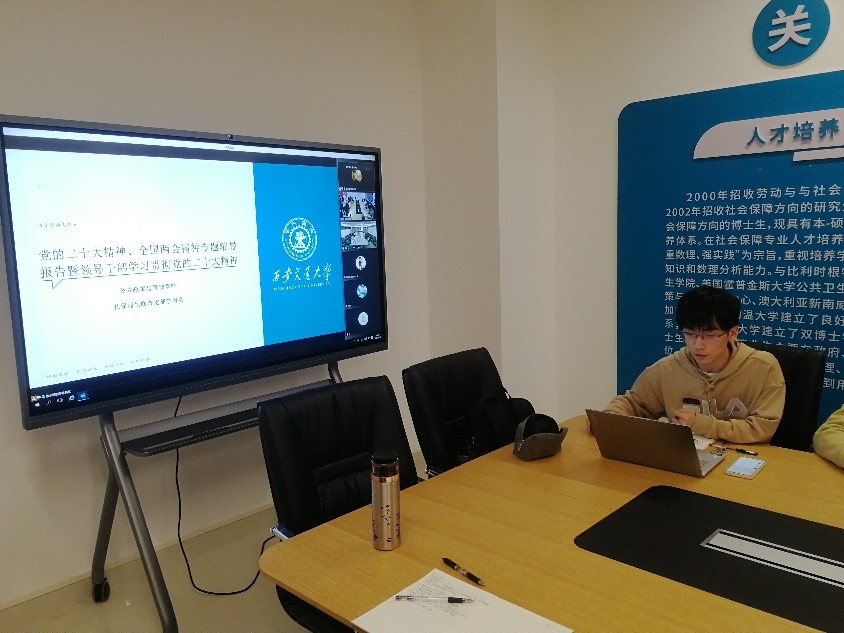 邸晓东同志的结合党的二十大精神进行的学术交流活动是社保师生联合党支部将党建工作与业务工作深度融合的一次尝试,未来,支部将继续推动党建工作与业务工作的深度融合发展。