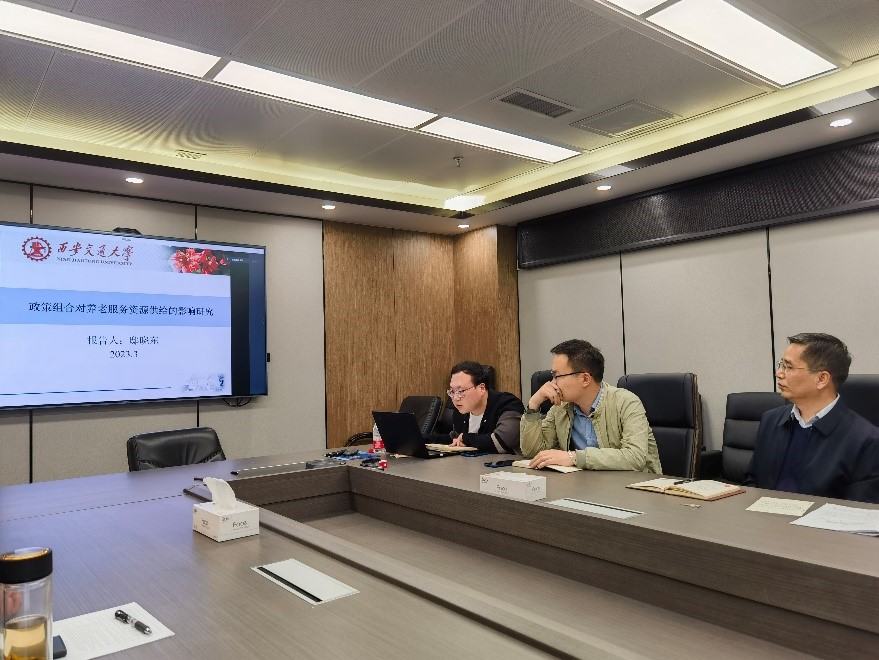 邸晓东同志首先介绍了党的二十大报告中关于社会保障的有关论述,分享了自己对实施积极应对人口老龄化国家战略,发展养老事业和养老产业,推动实现全体老年人享有基本养老服务的理解。在此基础上,邸晓东同志结合2011年至2019年国家出台的关于养老服务方面的政策文件,运用政策文献量化研究方法,探讨了政策组合的综合性、一致性、均衡性对养老服务资源供给的影响。章芬、代秀亮等同志与邸晓东同志进行了积极的互动,就养老服务政策组合、养老服务资源供给、科研方法等内容进行了探讨。