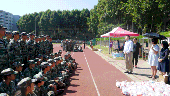 最后,执行院长杜海峰再次向教官们的辛勤付出表示衷心的感谢,一行人给教官和同学们发放了慰问礼品,并合影留念。相信2019级本科新生一定能够不负老师们的期许,在转变中担起更多责任,为世界之光!