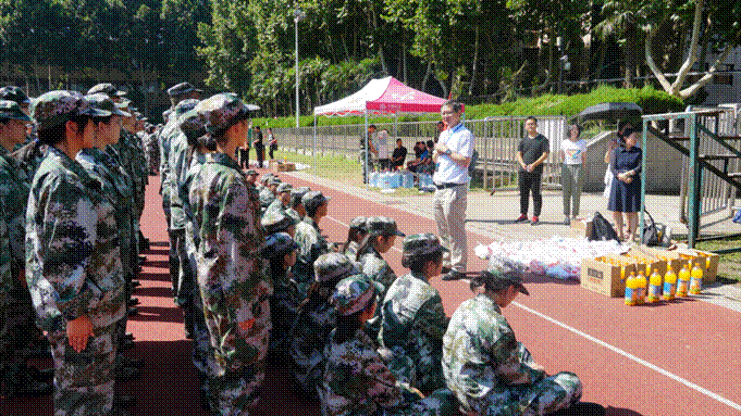 首先,副院长董新宇介绍了参加此次慰问的学院领导、老师。紧接着,执行院长杜海峰表达了对同学们军训辛苦的慰问。杜老师感谢了带领同学们度过这段训练时光的教官的付出,也感谢同学们自己配合教官获得知识,在艰苦环境下逐渐适应、取得成绩,此外还给同学们提出殷切建议,希望大家实现三个转变:一是从高中生到大学生的转变,是学习模式、方法、内容的转变;二是从孩子到公民的转变,是从父母眼里的孩子到担负很多责任和义务的公民;三是普通公民到军人的转变,军人意味着更多的责任和义务。