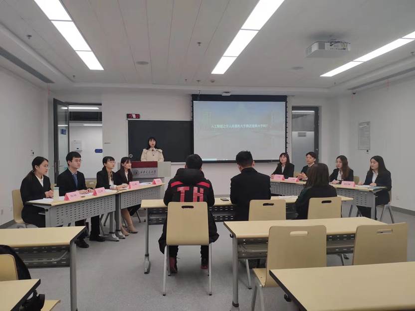 比赛双方是法学院“我要我觉得队”和新闻与新媒体学院“搞了个大新闻队”,辩题为“人工智能是否会超越人类的智慧?”,由于“我要我觉得队”未能如期参赛,不得已弃权,反方“搞了个大新闻队”获得了第一场比赛的胜利。