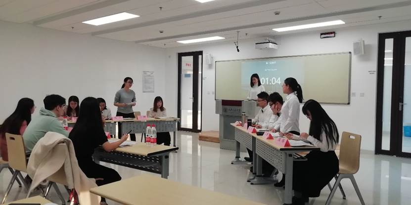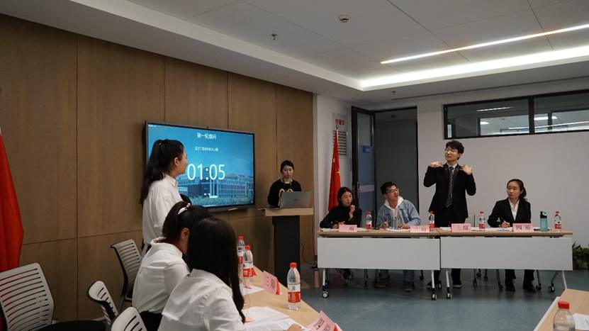 比赛双方是人文学院“TREE NEW BEE”队和管理、经金学院“憨憨说的都对”队,围绕“新型科学技术的推广应该重视科学家的论证还是公众的接受度”这一辩题进行了辩论。正方从科学家论证的客观性与公众接受度的可调节性出发,结合电动汽车举例讨论了科学家论证的重要性。反方则从科技造福民生出发,指出公众接受度高才说明新技术推广的好,并以DDT为例进行了论证。最后经评委投票计分,正方“TREE NEW BEE”队获得了第一场比赛的胜利,经评委综合考虑,正方四辩李青龍选手被评为本场最佳辩手。